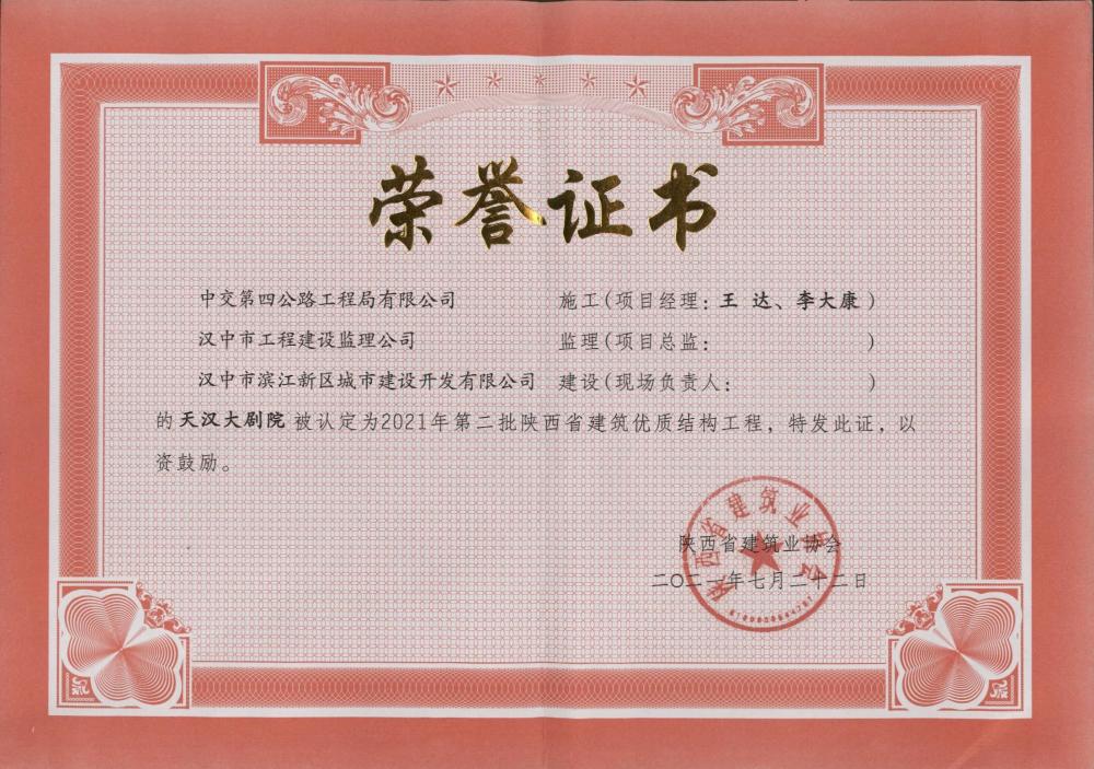 2021年第二批陕西省建筑优质结构工程