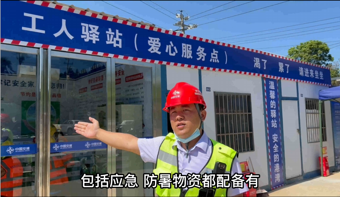 胥家桥项目工会设立的“工人驿站”在施工时间内对外开放,各驿站装有冷气空调,配备饮用水、应急药品、消毒设备等,同时有专人管理及安全应急措施,不仅为项目上的工人提供“清凉服务”,也为环卫工人、园林工人、城市管理者、交警、出租车司机、快递员等有需求的城市户外工作者提供“热可纳凉、渴可喝水、累可歇脚、临时避雨”等爱心服务,解决应急需求。