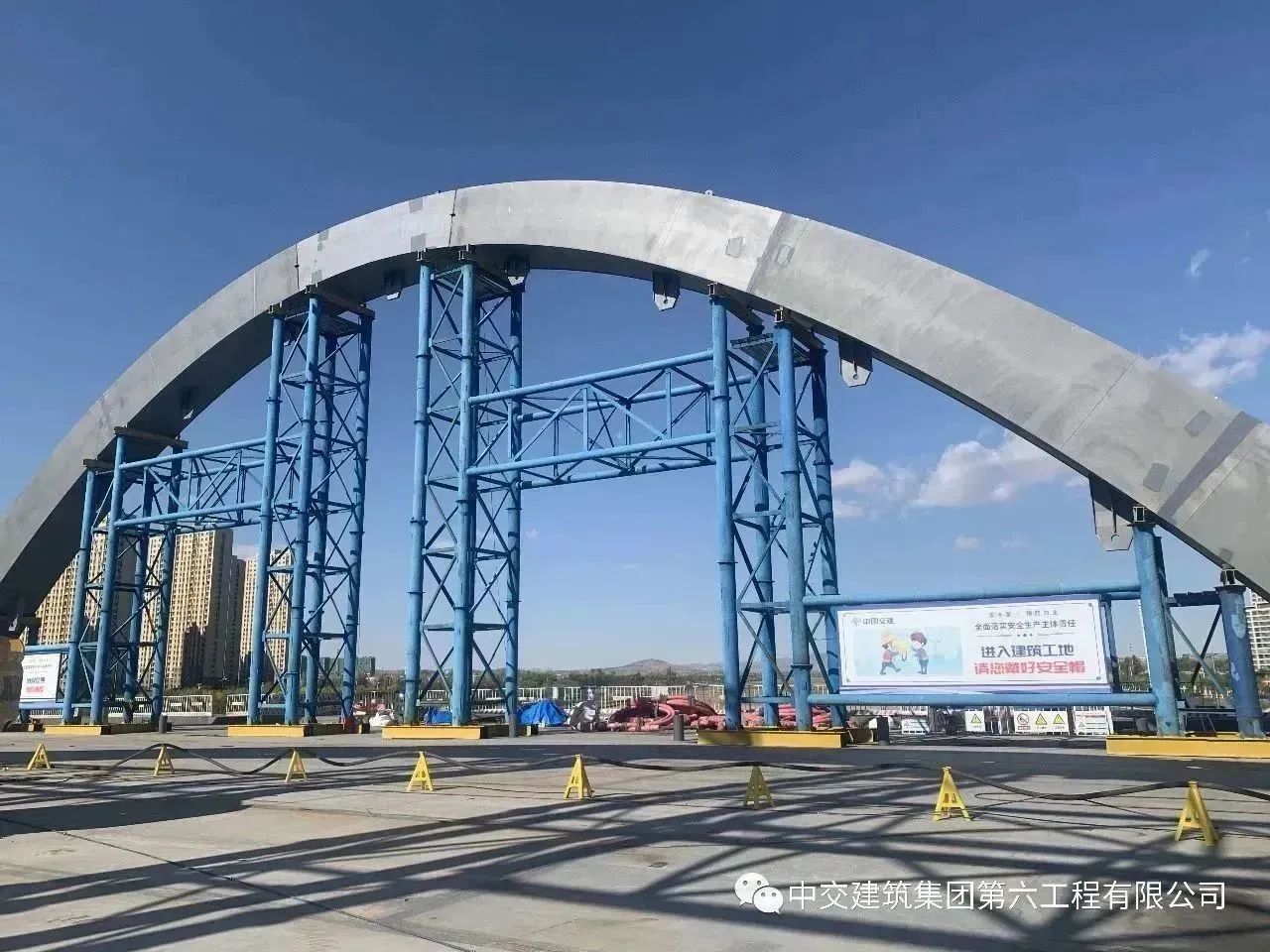 赤峰中环快速路四标项目阴河大桥主桥拱肋顺利合龙