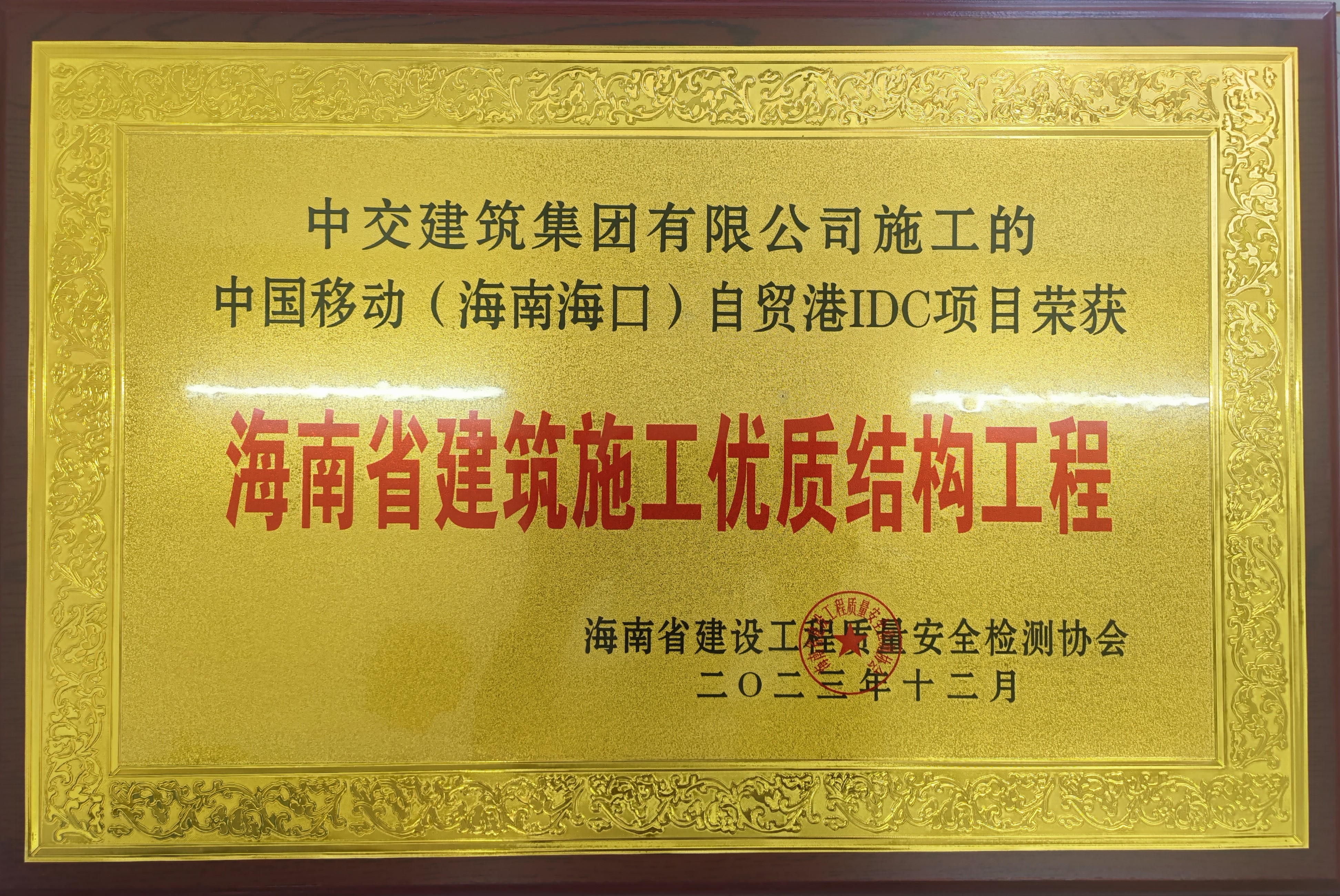 近日,由公司承建的中国移动(海南海口)自贸港IDC项目荣获海南省2023年度“安全文明标准化工地”、“优质结构工程”双项荣誉。