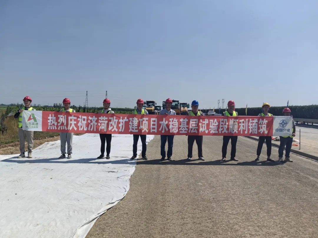 6月30日,济菏改扩建项目水泥稳定碎石基层试验段顺利摊铺,标志着该项目开始路面底基层、基层施工。