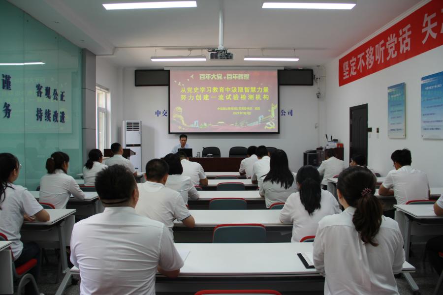 凌四以《从党史学习教育中汲取智慧力量 努力创建一流试验检测机构》为题,为公司党员干部讲授党史学习教育专题党课。带领大家重温了中国共产党的百年成就,从四个历史时期回顾党领导中国发生的翻天覆地的变化,分享了四个历史时期的重大事记,引导大家深刻认识到红色政权来之不易、新中国来之不易、中国特色社会主义来之不易。在党课中详细阐述了党百年辉煌的内在逻辑。回望过去,我们党团结带领人民创造了非凡成就,把辉煌写在了历史深处;放眼未来,民族复兴前景光明,更伟大的奇迹等待我们去创造。